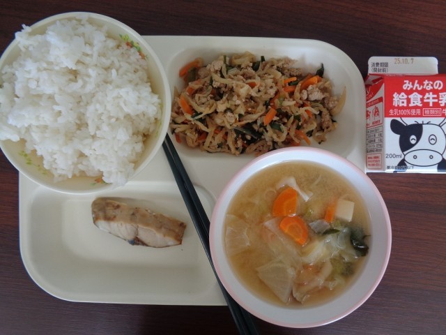 ご飯・牛乳・あじの塩焼き・切り干し大根のスタミナ炒め・野菜たっぷり味噌汁
