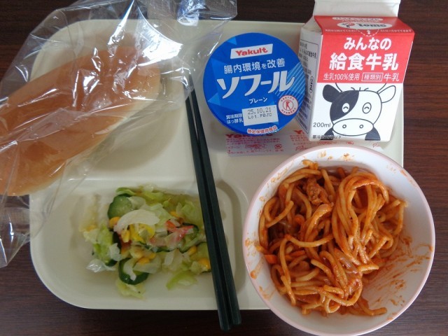 ミルクパン・牛乳・スパゲッティナポリタン・カラフルサラダ・ヨーグルト