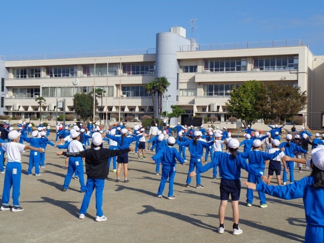 今日の朝行事は、運動会のラジオ体操の練習をしました。前に並んだ体育委員会の児童が見本をみせながら、全校でラジオ体操を行いました。ラジオ体操は立派な競技なんだなと思うほど、子どもたちもしっかりとラジオ体操を行っています。