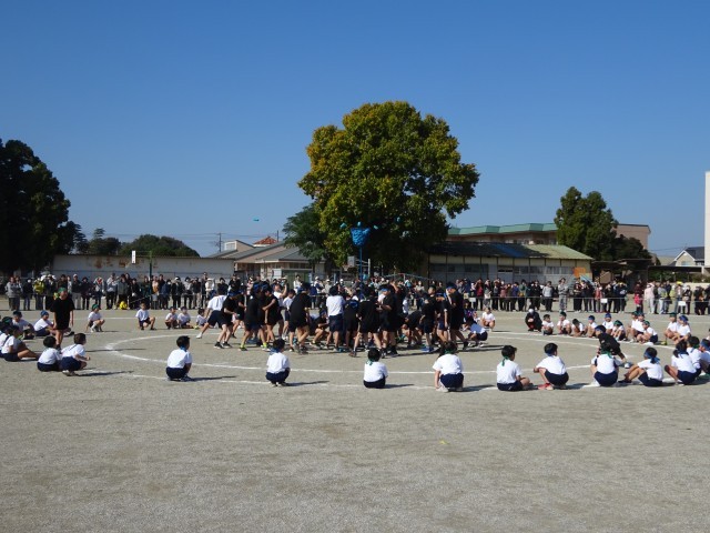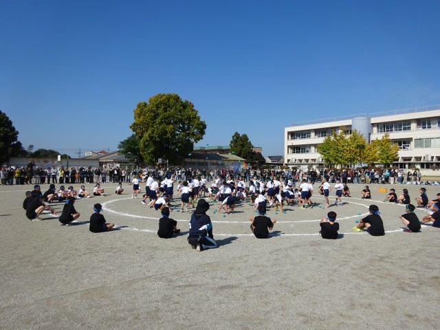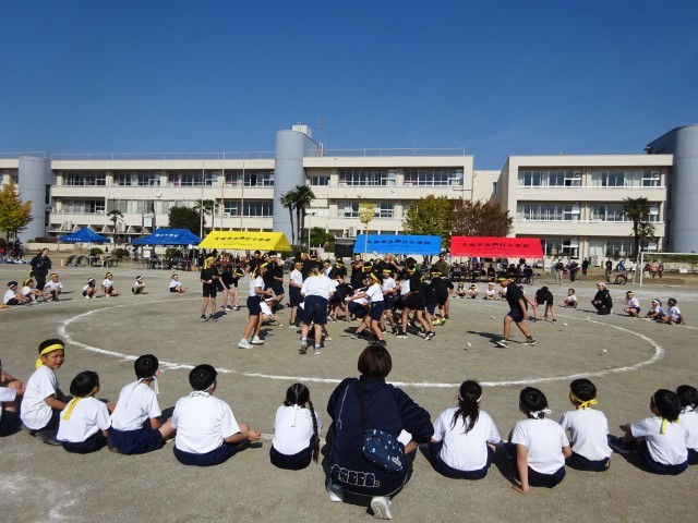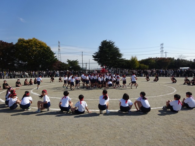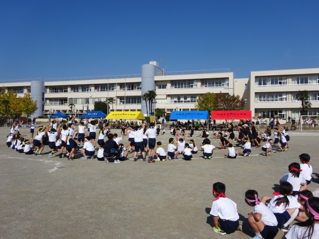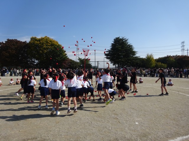 この後の選手リレーに出ない子どもたちが、1~3年と4~6年に分かれて玉入れを行います。