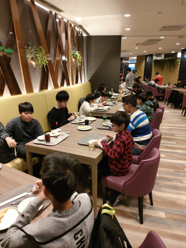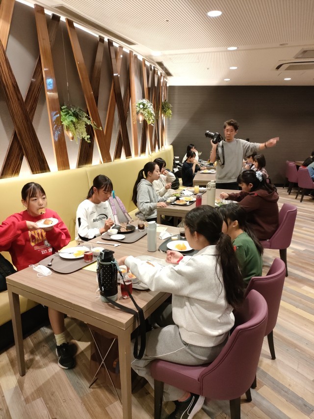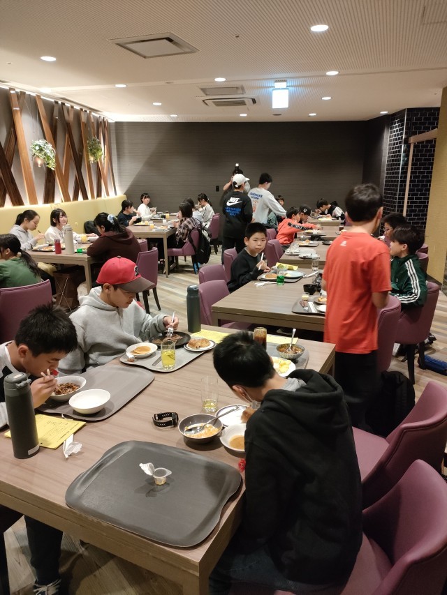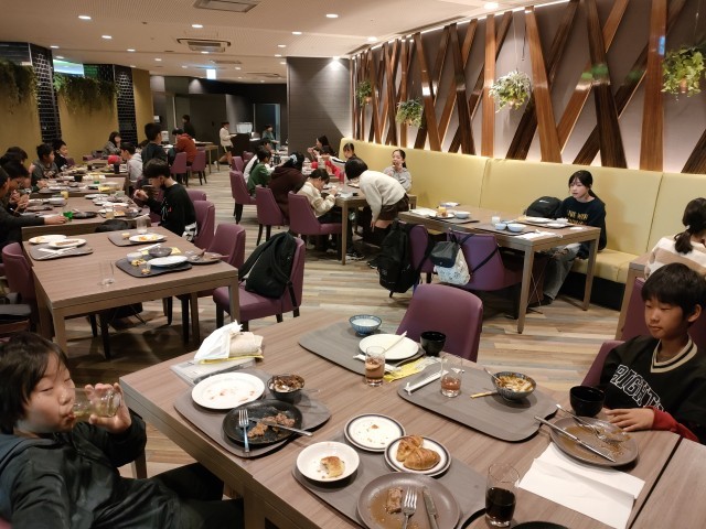 朝食は夕食と同じ場所です。朝はとても混んでいましたが、おのおのが食べたいものをとってしっかりと食べられました。朝からステーキなんて人もいましたね。
