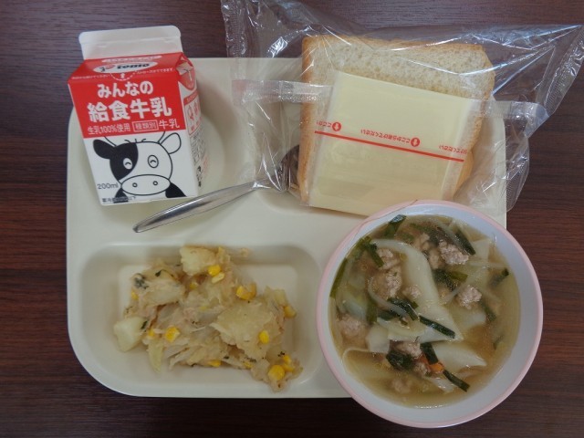 食パン・牛乳・ツナポテト・ワンタンスープ・スライスチーズ