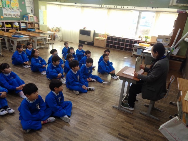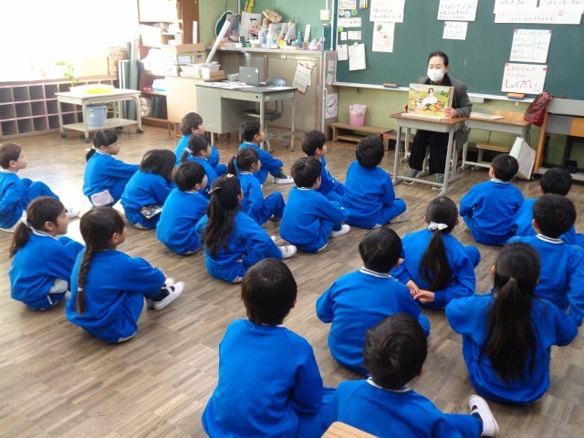いつも楽しい読み聞かせをありがとうございます。今日も1年生とそよかぜの子どもたちが楽しく読み聞かせをしてもらいました。