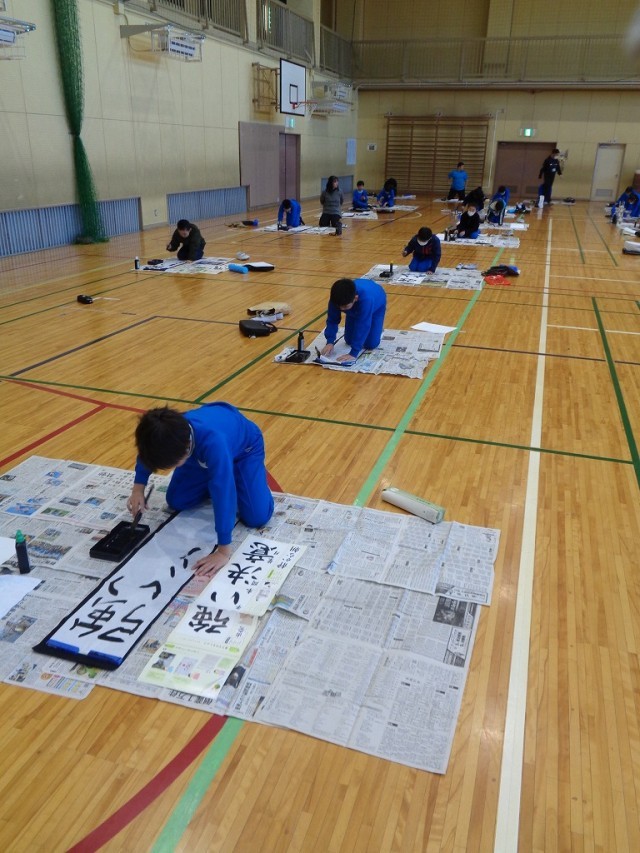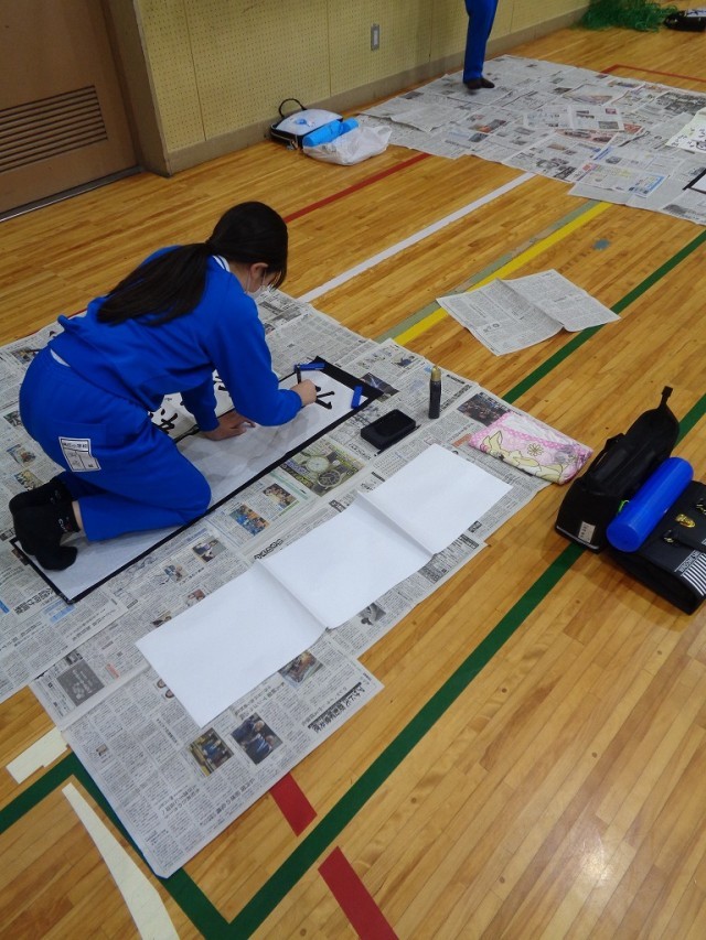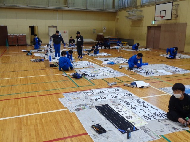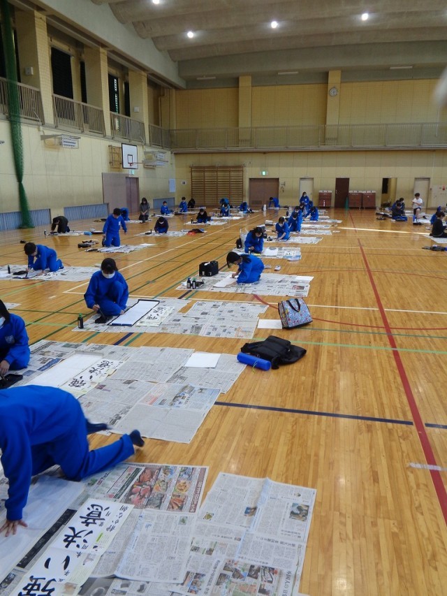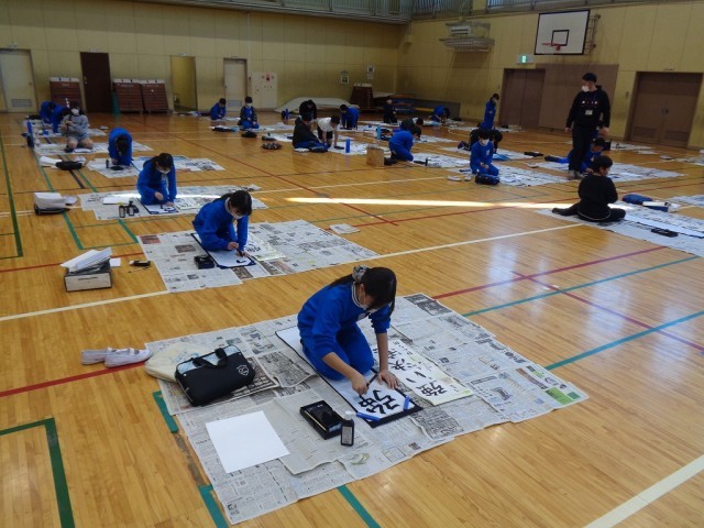 5、6校時に、5年生が書き初めを行いました。「強い決意」と文字をみんな真剣にかいています。