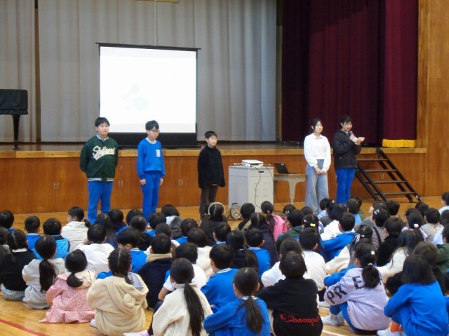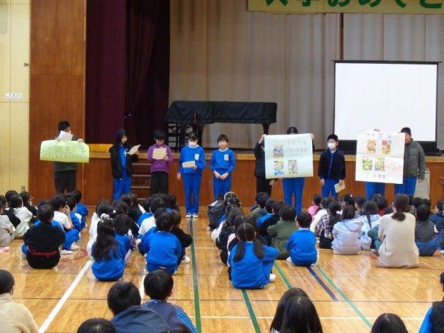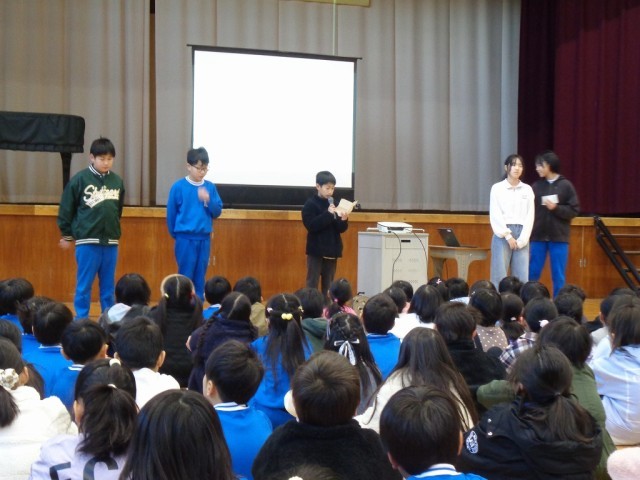1/14(水) 朝行事 児童集会 公開日 2026/01/14 更新日 2026/01/14 学校ブログ 今日の朝行事は児童集会でした。今日は、図書委員会と放送掲示委員会です。行事の連絡や本の紹介、委員会からのお願いやクイズなど、工夫して発表してくれました。 +5