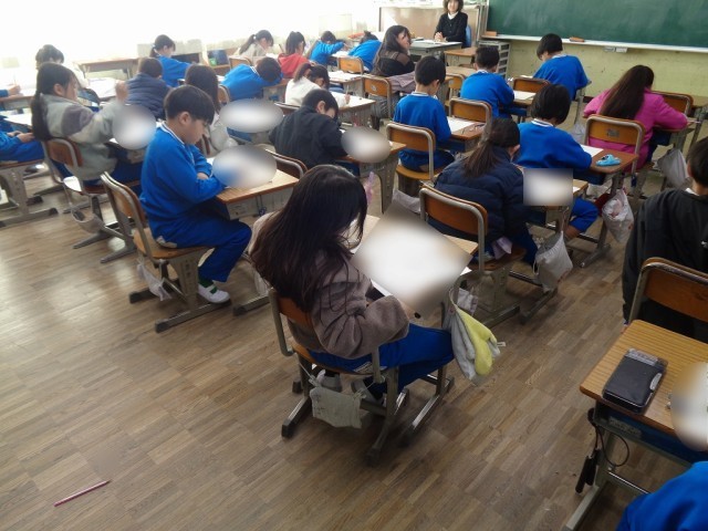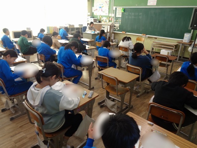 2、3校時に全学年で標準学力調査(テスト)を行いました。各学年、単元ごとのテストは行っていますが、全校一斉でテストを行う機会は年に1度今回だけです。どの学年、どのクラスも静まりかえった教室で、みんな真剣にテストを受けることができました。