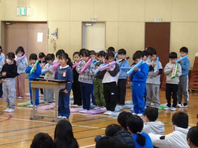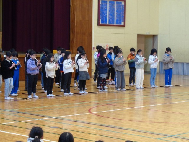 1/21(水) 音楽集会わたっこ広場 公開日 2026/01/21 更新日 2026/01/21 学校ブログ 今日の朝行事は、音楽集会わたっこ広場でした。 3年生と1年生の発表と全校合唱「歌は生きている」です。今日の音楽集会で、全学年の発表が終了しました。各学年、素晴らしい歌声と音色を披露してくれてありがとうございました。 +7