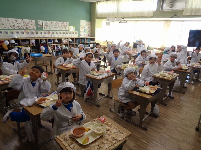 1/23(金) カレーの日のおいしい顔!(1・2年・そよかぜ)
