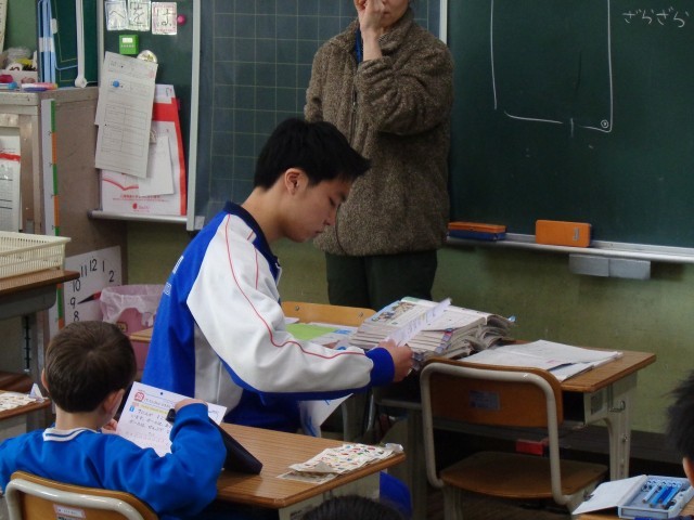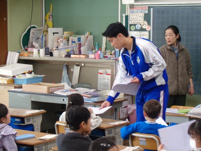 2/18(水) ようこそ先輩! 公開日 2026/02/18 更新日 2026/02/18 学校ブログ 今週一週間、綿打小学校を卒業した高校3年の先輩が小学校ボランティアチューターとして1年生と一緒に生活をしています。教室での業務補助や休み時間の子どもたちの遊び相手として頑張ってくれています。