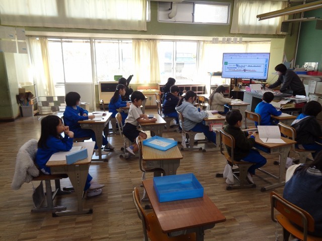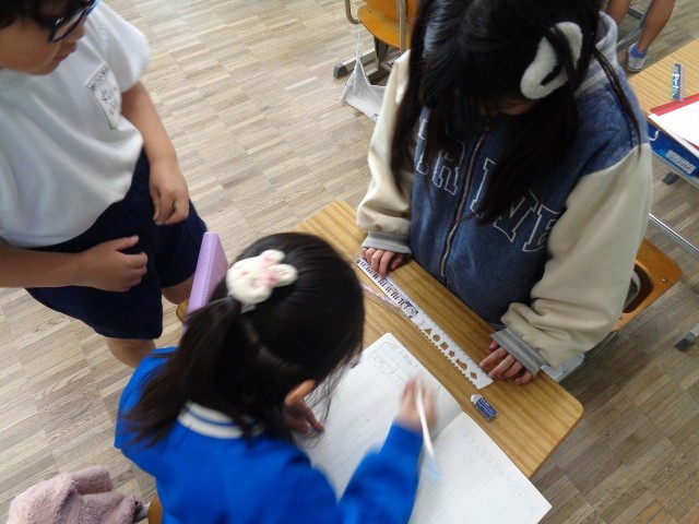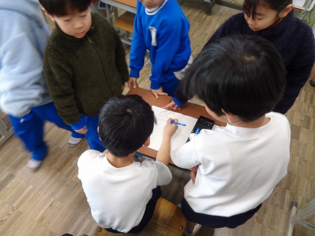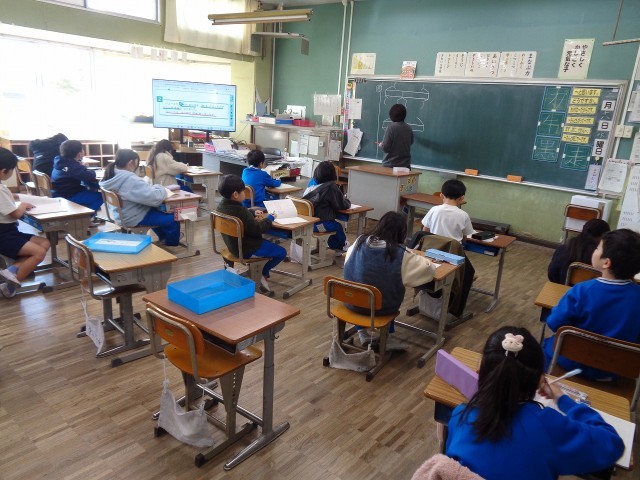 2年生の算数の授業では、図を使って文章問題をみんなで解いています。友達とも一緒に考えながら、問題を解く楽しさを感じられているようです。