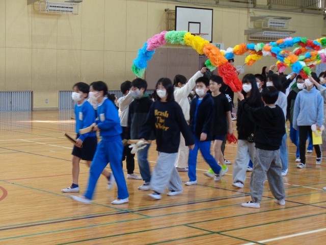 各学年から6年生へ、感謝の言葉とともに、卒業を祝う気持ちやこの時間を楽しんでもらおうと歌や合奏、ダンスやアトラクションが披露されました。