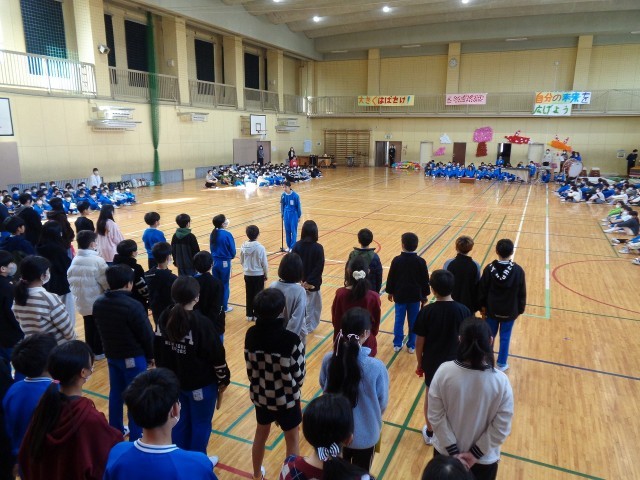 6年生からも素晴らしい合奏と合唱の披露に加え、6年生が先頭になって全校でジャンボリミッキーのダンスをしました。
