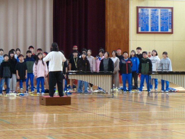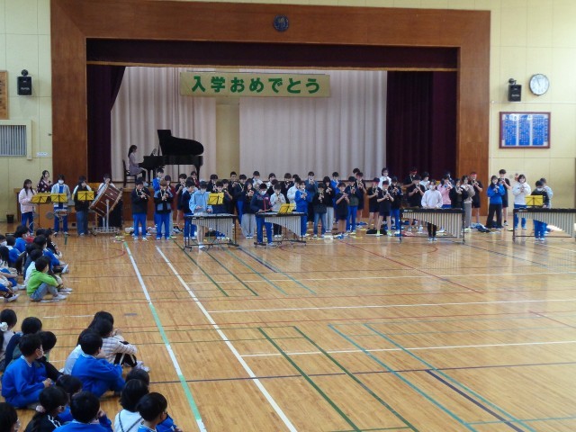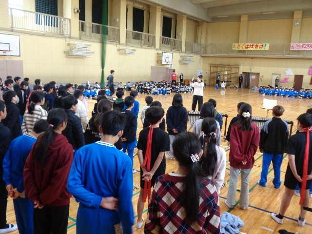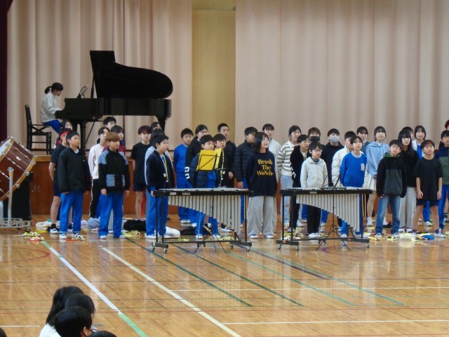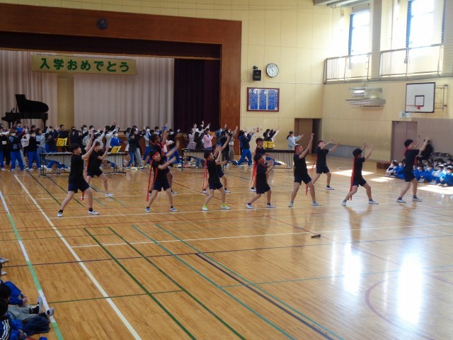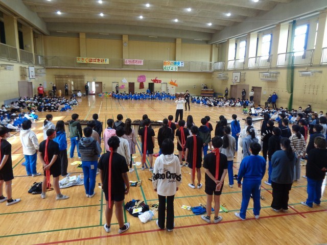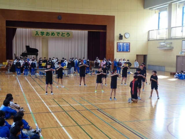 6年生にプレゼント贈呈と6年生からの出し物の様子です。