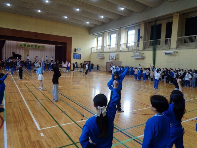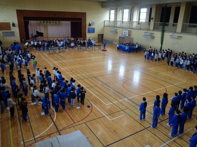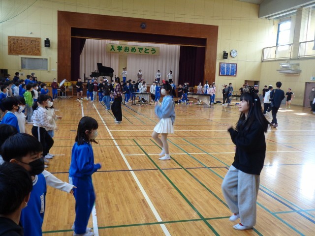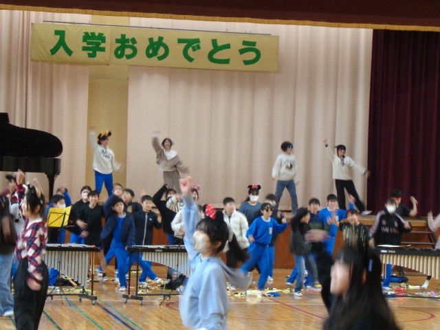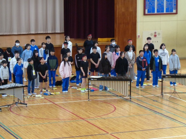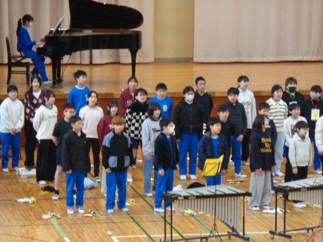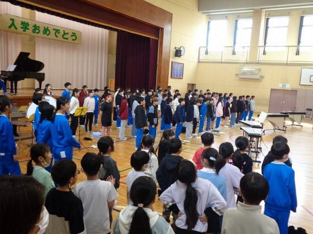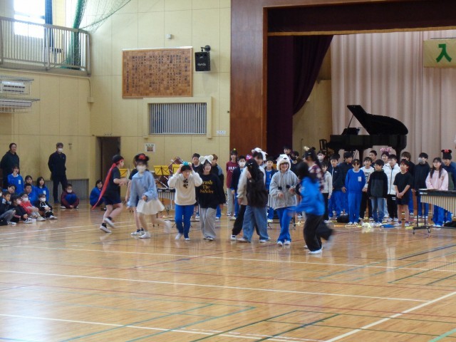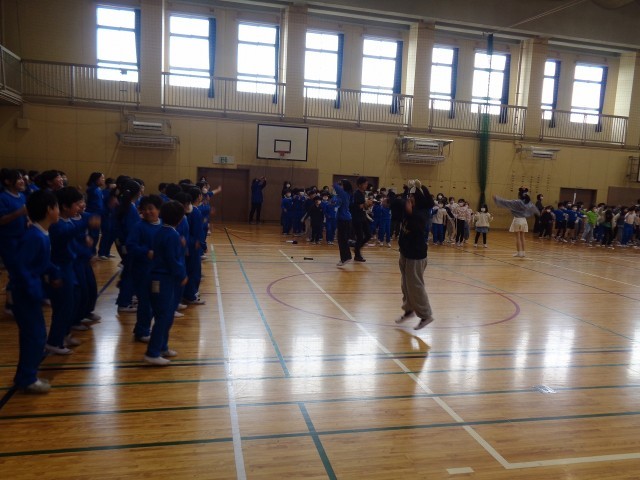 全校ジャンボリミッキーと全校合唱の様子