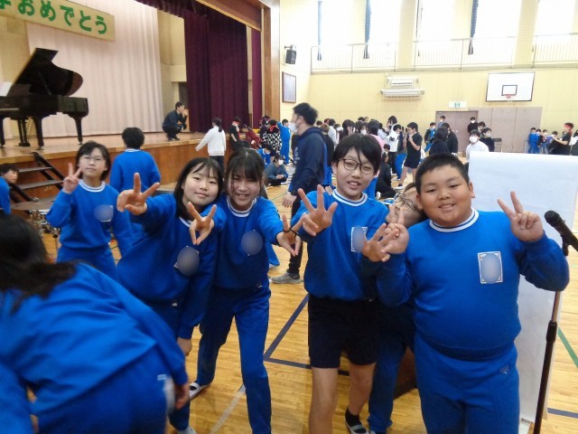 6年生の退場の様子と司会進行を頑張ってくれた5年生の学級委員さんです。
