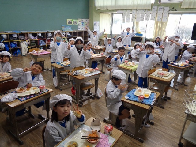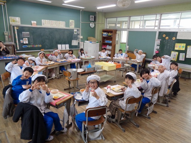 2年生、最後の給食・おいしい顔!