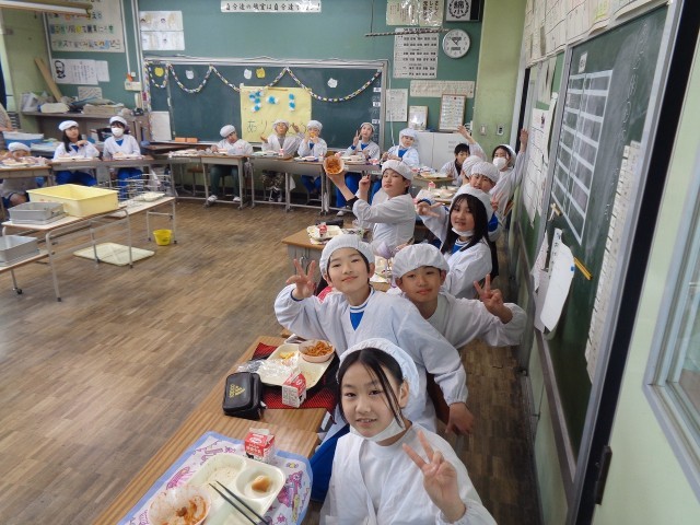 5年生、最後の給食・おいしい顔!