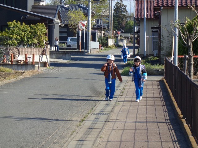 今日から、1年生も一緒の登校が始まりました。