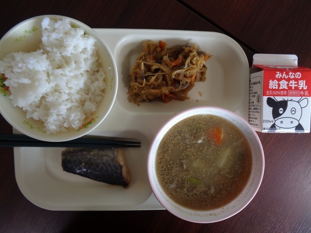 ご飯・牛乳・さわらの西京焼き・切り干し大根のカレー煮・根菜のごま汁