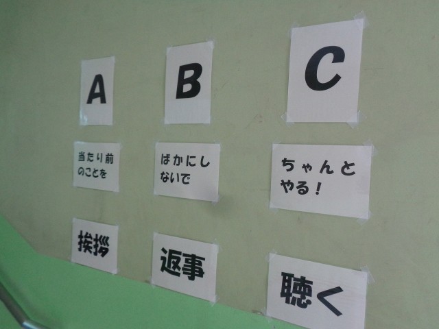 5年生のフロアには「A・B・C」にちなんだ目標が掲げられていました。
