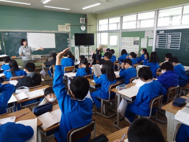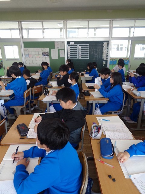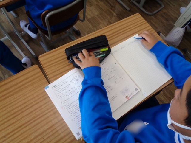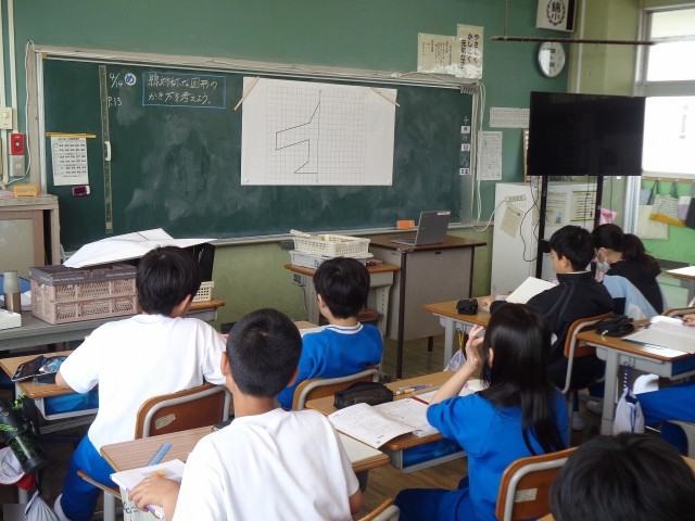 6年生の算数の授業の様子です。線対称な図形について学習しています。