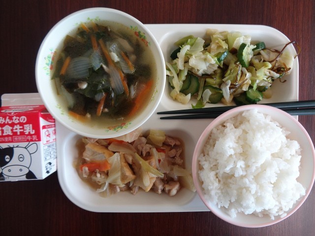 4/16(木) 今日の給食・今日は誰の誕生日? 公開日 2026/04/16 更新日 2026/04/16 今日の給食 【今日の給食】 ご飯・牛乳・鶏肉のオイ味噌炒め・塩昆布和え・オニオンスープ【今日は誰の誕生日?】 池田エライザ 藤井健太郎 徳井義実 笹崎里菜 BONNIEPINK 岡崎慎司