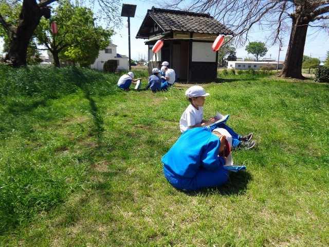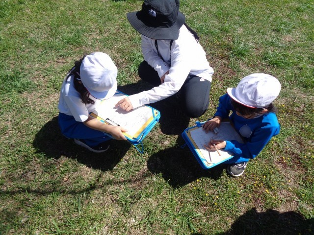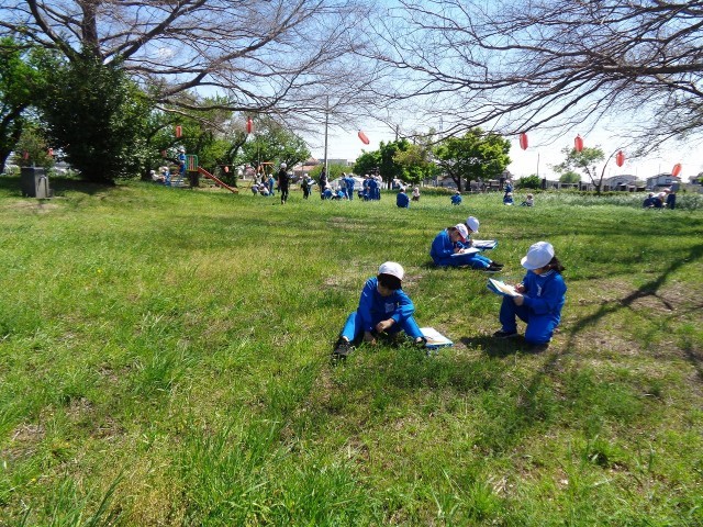 2年生は、生活科の学習「春をさがそう」で天沼公園に行ってきました。天沼公園に咲いている花や植物、昆虫などを見つけて、絵に描いたり、特徴を言葉で残したりしていました。