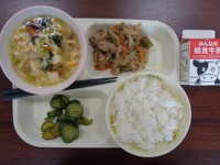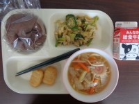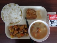 【十五夜メニュー】 ご飯・牛乳・さばの照り焼き・もやしと小松菜の和え物・里芋汁・...