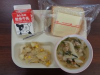【今日の給食】 食パン・牛乳・ツナポテト・ワンタンスープ・スライスチーズ【今日の...