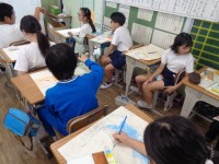 5年生が図工の時間に、国語で学習した「太蔵じいさんとガン」の水彩画を描いていま...