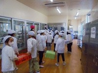 2年生が、給食を給食室まで取りに行く練習を始めました。1年生と2年生は、各階まで...