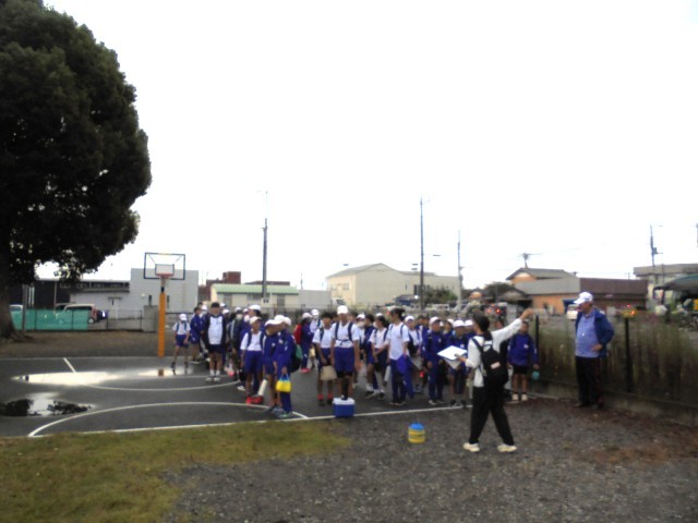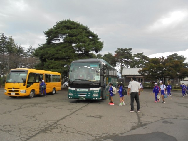 藪小 チーム「チャレンジ」の選手達が陸上競技場に向けて出発しました。