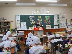 給食の時間に、給食の先生が4年生にお話をしてくれました。