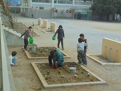 また、花壇に植えてあるパンジーの水やりもしてくれました。