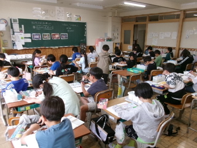 児童の皆さんは、みんな真剣に筆を動かしていて、素晴らしかったです。