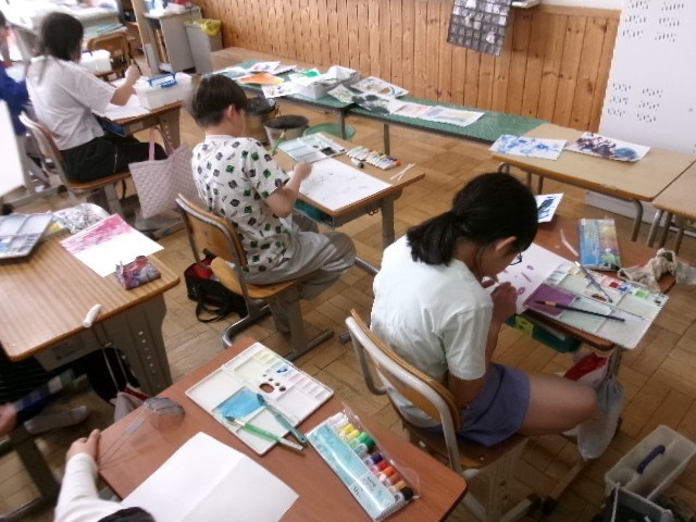 ドリッピングや吹き流しなどの技法を使いながら、オリジナルの絵を創作していきました。