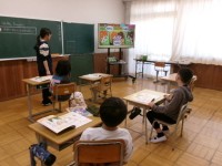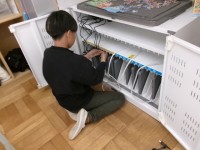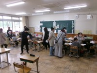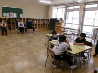こいのぼりのリース 公開日 2026/04/27 更新日 2026/04/27 特別支援 6~8組の廊下には、児童の皆さんがつくったこいのぼりのリースが飾られています。いろいろな色や形のこいのぼりが大空を泳いでいるようです。