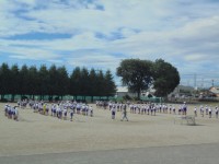 運動会に向けて、応援席から開会式の隊形に移動する確認をしました。全校で集まったと...