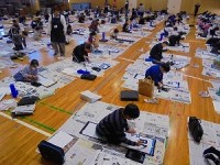 「新たな世界」6年生が静寂の中で集中して筆を動かしていました。表装した作品を鑑賞...