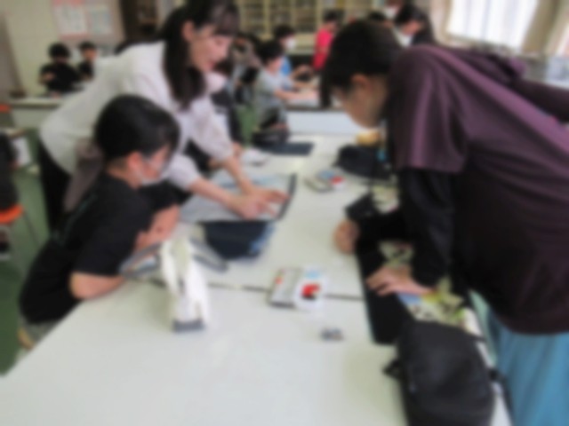教員一人だけでは、なかなか手が回らないので、保護者の方々からボランティアを募って協力していただいています。お陰様で、効率よく学習が進んでいます。エプロンの仕上がりが楽しみです。