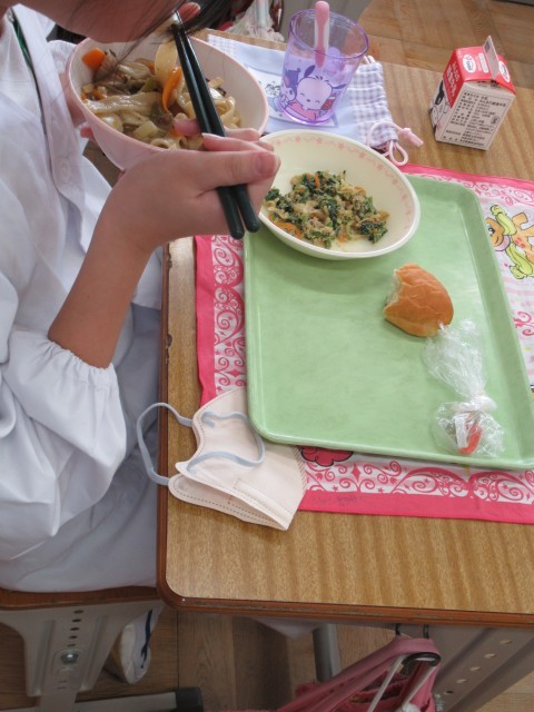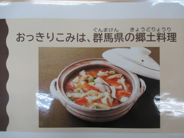 今日は、主に5年生に給食の時間を使って栄養士が 「おきりっこみ」や「郷土料理」についての講話を行いました。少し肌寒く暖かい食べ物が嬉しい気候だったので、子供たちは、「おきりっこみ」を口いっぱいにほおばりながら、しっかり食べていました。満足そうな笑顔が広がっていました。