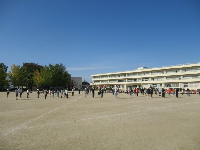 演奏曲は「校歌」「聖者の行進」「アンダー・ザ・シー」の3曲です。校庭の東側から入場し校庭の西側へ退場します。