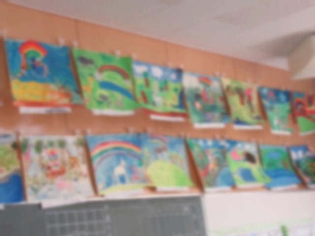 各学年で取り組んだ作品の主な内容は、1年生:くじらぐも 2年生:にじいろのしまうま3年生:リコーダーをふいている自分 4年生:へちまとわたし 5年生:スニーカーの旅 6年生:ランドセル です。