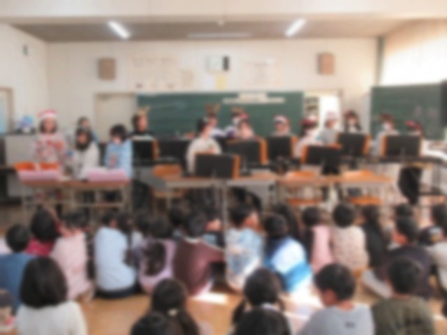 12月16日の昼休みは、音楽クラブによるミニコンサートが音楽室で行われました。本日は、1~3年生を対象にしたミニコンサートでした。18日は、4~6年生を対象にしたミニコンサートが行われます。