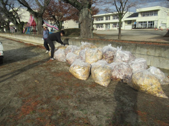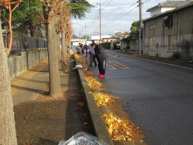 主に学校周囲の街路樹の落ち葉清掃でした。東側の銀杏や南側のはなみずき、西側の銀杏の落ち葉等の清掃に約1時間程度取り組みました。授業日には、なかなか取り組むことが難しい清掃活動も冬期休業を利用し取り組むことができました。すっかりきれいになり、新年を気持ちよく迎えられそうです。