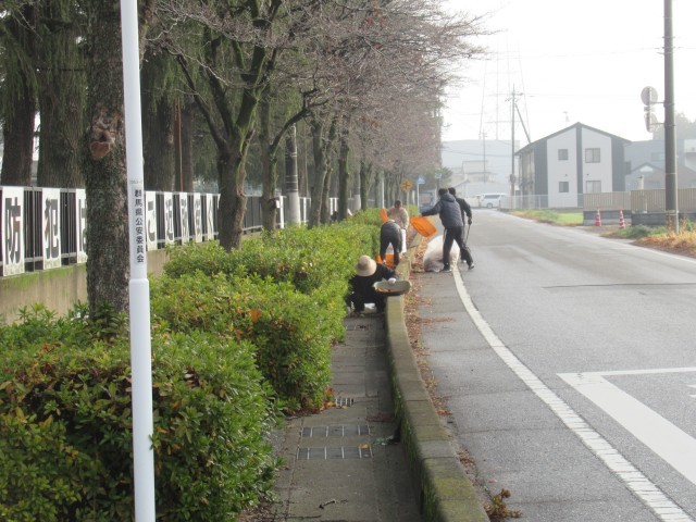 12月25日(木)に、職員で学校周辺の清掃を行いました。12月24日にPTAのボランティアの方々と取り組む予定でしたが、あいにくの雨でしたので、本日職員のみで行いました。
