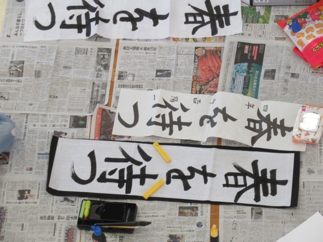今日は、比較的暖かい日でしたが、まだまだ厳しい寒さがやってきそうです。そんな真冬の寒さから暖かい春を待ちわびる気持ちで書をしたためた子もいたことでしょう。