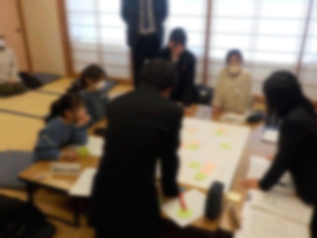 中学生が小学生をリードしながら話し合いを進め、どの班もいじめ防止の意識を高めていました。