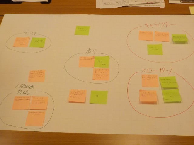 付箋紙に自分の考えを書き、それを模造紙に貼りながら考えを紹介し合い、付箋紙をまとめ、最後に班ごとに発表をし合いました。