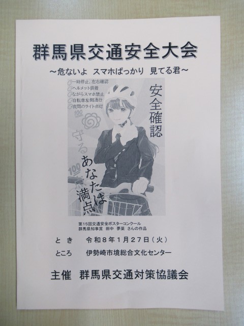 1月27日(火)に伊勢崎市境総合文化センターにて、群馬県交通安全大会が行われました。
